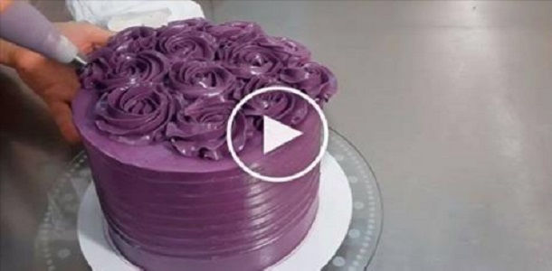 Mira como hace la repostera para decorar una tarta de rosas color violeta poco más de 2 minutos.  ¡Y además le queda perfecta!