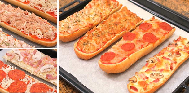 Aprende  como hacer 4 Tipos de Pizza Fáciles y Rápidas de hacer usando una barra de pan. Es una alterativa a las pizzas tradicionales y se conocen como pizza pan o paninis. En poco tiempo tendremos unas riquísimas pizzas!